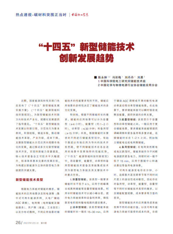 近期,國家能源局和有關(guān)部門先后發(fā)布了《“十四五”新型儲(chǔ)能發(fā)展實(shí)施方案》、《“十四五”能源領(lǐng)域科技創(chuàng)新規(guī)劃》,為新型儲(chǔ)能技術(shù)創(chuàng)新方向和技術(shù)產(chǎn)業(yè)化、規(guī)?;l(fā)展提供了指導(dǎo)意見?!笆奈濉毙滦蛢?chǔ)能技術(shù)發(fā)展以創(chuàng)新引領(lǐng)、示范先行為基本原則,補(bǔ)強(qiáng)短板,鍛造長板,推動(dòng)儲(chǔ)能技術(shù)革新、產(chǎn)業(yè)升級(jí)、成本下降,支撐新型儲(chǔ)能從示范應(yīng)用向規(guī)模市場化的發(fā)展。通過推動(dòng)多元化新型儲(chǔ)能技術(shù)開發(fā),實(shí)現(xiàn)創(chuàng)新能力顯著提高、核心技術(shù)裝備自主可控水平大幅提升、標(biāo)準(zhǔn)體系基本完善的發(fā)展目標(biāo),為構(gòu)建以新能源為主體的新型電力系統(tǒng)提供關(guān)鍵支撐。