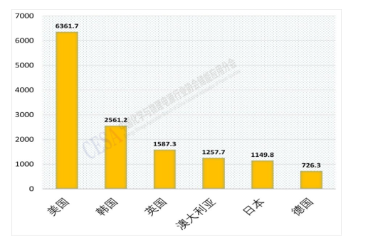 全球電化學(xué)儲(chǔ)能市場(chǎng)典型國(guó)家包括美國(guó)、韓國(guó)、英國(guó)、澳大利亞、日本、德國(guó)等,上述國(guó)家2021年電化學(xué)儲(chǔ)能裝機(jī)規(guī)模分別為6361.7 MW、2561.2 MW、1587.3 MW、1257.7 MW、1149.8 MW、726.3MW。