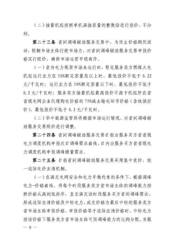 中國儲(chǔ)能網(wǎng)訊:4月24日,國家能源局華中監(jiān)管局發(fā)布《華中省間電力調(diào)峰及備用輔助服務(wù)市場運(yùn)營規(guī)則(征求意見稿)》公開征求意見的通知。規(guī)則中提出服務(wù)賣方抽蓄機(jī)組最高報(bào)價(jià)不高于機(jī)組所在省省級(jí)電網(wǎng)企業(yè)代理購電價(jià)格的75%減去輸電環(huán)節(jié)價(jià)格(含線損折價(jià)),最低報(bào)價(jià)不低于0.2元/千瓦時(shí)。