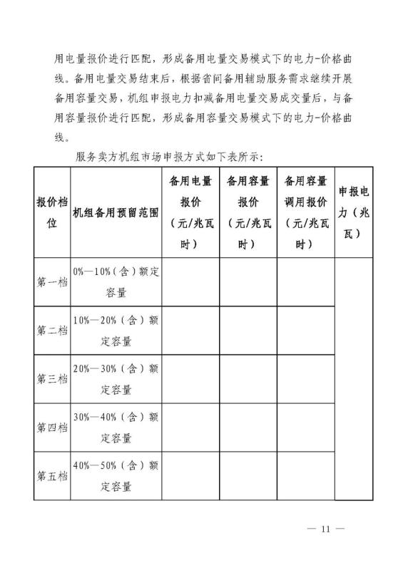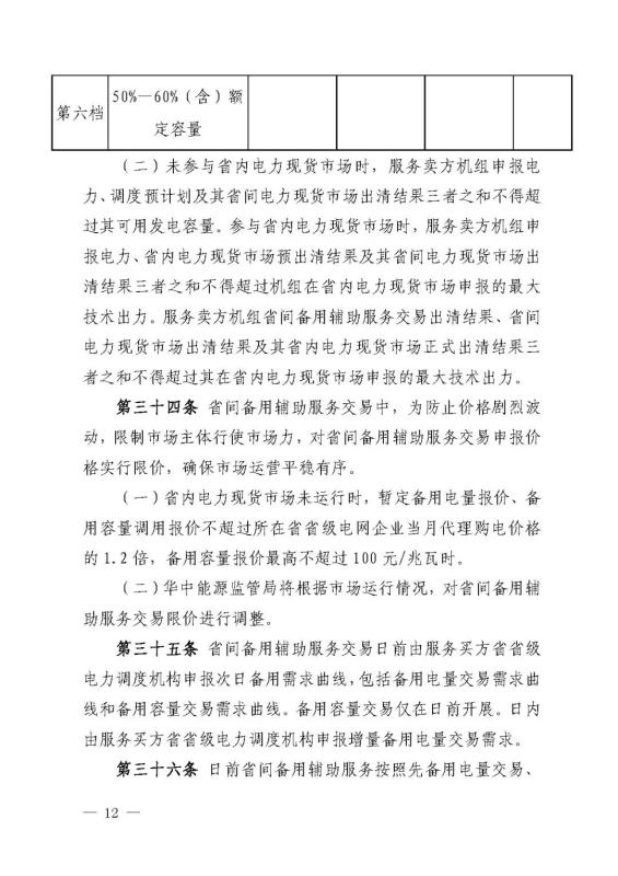 省內(nèi)電力現(xiàn)貨市場未運(yùn)行時(shí),暫定備用電量報(bào)價(jià)、備用容量調(diào)用報(bào)價(jià)不超過所在省省級(jí)電網(wǎng)企業(yè)當(dāng)月代理購電價(jià)格的1.2倍,備用容量報(bào)價(jià)最高不超過100元/兆瓦時(shí)。