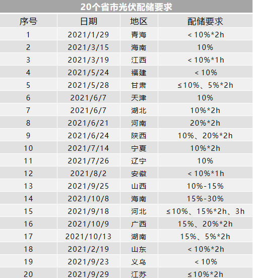 2022年1月,山東省棗莊市能源局、棗莊市行政審批局和棗莊供電公司聯(lián)合下發(fā)的《棗莊市分布式光伏開發(fā)建設(shè)規(guī)范》明確提出,新建分布式光伏要“按照裝機(jī)容量的15%-30%、時長2-4小時配置儲能設(shè)施,或者租賃同等容量的共享儲能設(shè)施”。3月16日,河北省能源局也發(fā)布了《屋頂分布式光伏建設(shè)指導(dǎo)規(guī)范(試行)》,要求配套儲能,可選擇自建、共建或租賃等方式靈活開展配套儲能建設(shè)。屋頂分布式光伏項(xiàng)目逐步按照“光伏+儲能”方式開發(fā)建設(shè),以確保電網(wǎng)安全運(yùn)行和用戶供用電安全為原則,統(tǒng)籌考慮負(fù)荷特性和電能質(zhì)量要求進(jìn)行儲能配置。
