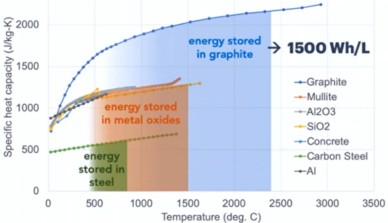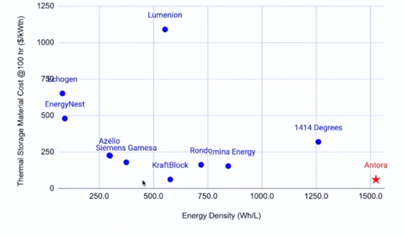 與其他熱儲(chǔ)能產(chǎn)品相比,Antora Energy采用固態(tài)碳?jí)K作為儲(chǔ)熱介質(zhì),具有造價(jià)低、原材料供應(yīng)充足、極高能量密度、高導(dǎo)熱系數(shù)。