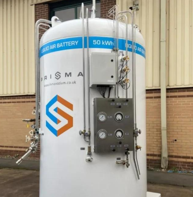 LAES系統(tǒng)以液態(tài)空氣的形式儲(chǔ)存熱能,提供現(xiàn)場(chǎng)壓縮空氣,并通過(guò)一個(gè)充滿相變材料(PCM)的潛在能量冷庫(kù)進(jìn)行工作,該相變材料由Innovatium與伯明翰大學(xué)合作設(shè)計(jì)和測(cè)試。PCM可以吸收、存儲(chǔ)和釋放一定溫度范圍內(nèi)的大量潛熱,在研究層面經(jīng)常被用于光伏組件的冷卻。