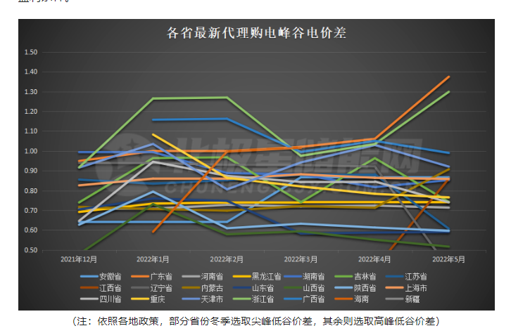由此可見,在電網(wǎng)代理購電的政策下多省的電價差有明顯拉大。