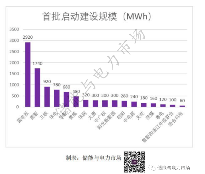 首批項目涉及17家新能源企業(yè),國電投裝機規(guī)模最大,2.92GWh。