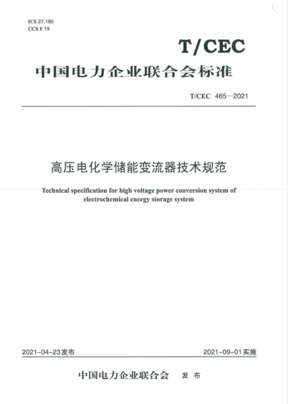 中國(guó)儲(chǔ)能網(wǎng)訊:廣州智光電氣股份有限公司(以下簡(jiǎn)稱“智光電氣”)控股子公司廣州智光儲(chǔ)能科技有限公司(以下簡(jiǎn)稱“智光儲(chǔ)能”)牽頭起草T/CEC 465-2021《高壓電化學(xué)儲(chǔ)能變流器技術(shù)規(guī)范》,規(guī)定了高壓電化學(xué)儲(chǔ)能變流器的分類、環(huán)境條件、安全、功能要求、性能指標(biāo)、標(biāo)識(shí)與文檔、包裝、運(yùn)輸、儲(chǔ)運(yùn)、檢驗(yàn)等要求,適用于無(wú)需集成升壓變壓器、交流側(cè)輸出電壓等級(jí)6kV至35kV的高壓電化學(xué)儲(chǔ)能變流器。