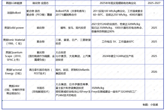 除了固態(tài)電池外,頭部和初創(chuàng)企業(yè)也在積極布局其他體系的電池:
