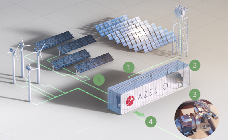 中國儲能網(wǎng)訊:當前,以沙漠荒漠戈壁為主的新能源基地項目正在大規(guī)模推進。沙漠荒漠戈壁地區(qū)電網(wǎng)網(wǎng)架薄弱,電網(wǎng)支撐能力有限,需要配置足夠規(guī)模的儲能系統(tǒng)才能滿足新能源的送出和消納。另一方面,我國沙漠荒漠戈壁地區(qū)氣候條件復雜,傳統(tǒng)電化學儲能對極端氣候的適應性尚未得到驗證,適應于沙漠荒漠戈壁新能源基地的儲能方案還有待進一步研究摸索。近段時間,來自瑞典的長時儲能公司Azelio在阿布扎比沙漠地區(qū)開展了一項創(chuàng)新研發(fā)項目,本文將介紹該公司的長時儲能技術,希望對國內沙漠荒漠戈壁新能源基地儲能項目開發(fā)有所啟發(fā)。