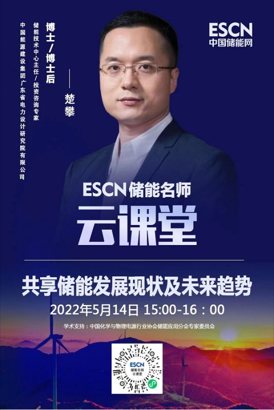 5月14日下午15:00-16:00,中國(guó)儲(chǔ)能網(wǎng)非常榮幸地邀請(qǐng)到國(guó)能源建設(shè)集團(tuán)廣東省電力設(shè)計(jì)研究院有限公司儲(chǔ)能技術(shù)中心主任兼設(shè)計(jì)總工程師做客“ESCN儲(chǔ)能名師云課堂”(在線(xiàn)直播),為大家分享《共享儲(chǔ)能發(fā)展現(xiàn)狀及未來(lái)趨勢(shì)》主題報(bào)告。歡迎業(yè)界同仁在線(xiàn)學(xué)習(xí)與交流。