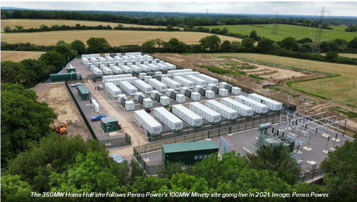 350MW的HamsHall電池儲(chǔ)能系統(tǒng)將與PensoPower公司2021年投入使用的100MW的Minety太陽(yáng)能發(fā)電場(chǎng)地配套部署