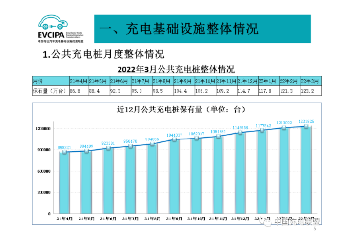 據(jù)中國電動汽車充電基礎(chǔ)設(shè)施促進聯(lián)盟統(tǒng)計,截至2022年4月,我國充電基礎(chǔ)設(shè)施保有量為310.9萬臺,其中公共充電樁123.2萬臺,私人充電樁187.7萬臺。