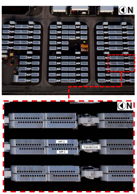 VBB電池儲能項目的火災(zāi)調(diào)查過程不僅涉及分析MP-1初始火災(zāi)的根本原因,還包括分析火災(zāi)蔓延到MP-2的根本原因。Megapack電池儲能單元被設(shè)計成彼此鄰近安裝,不會使火蔓延到相鄰的電池儲能單元。其在限制火勢蔓延方面的設(shè)計主要依賴于Megapack儲能系統(tǒng)集裝箱的外部鋼板,這種鋼板可以充當(dāng)電池散熱器。有了這種隔熱材料,Megapack電池儲能單元之間的側(cè)面和背面的間距接近15厘米,每個Megapack前面有2.4米寬的過道,如圖1所示。這種產(chǎn)品間距在UL9540A單元級測試中得到驗證?,F(xiàn)場檢查支持對MP-2和火災(zāi)測試的遙測數(shù)據(jù)(如內(nèi)部溫度)分析。而現(xiàn)場調(diào)查結(jié)果、遙測數(shù)據(jù)分析和火災(zāi)測試相結(jié)合,確定了Megapack電池儲能系統(tǒng)可能發(fā)生火災(zāi)蔓延的情況。