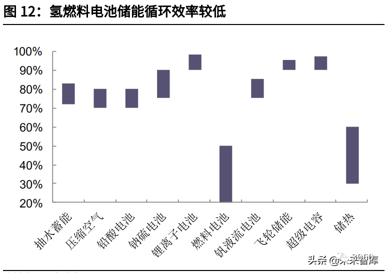 1.2.3、氫儲能能量密度高,在大規(guī)模儲能極具潛力
