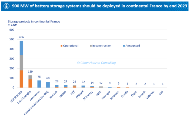 盡管目前只有兩種收益模式,但依舊沒有阻擋儲(chǔ)能投資商的熱情,目前法國(guó)單體最大項(xiàng)目的投資商為道達(dá)爾能源,位于法國(guó)北部敦刻爾克的 TotalEnergies 煉油廠的 BESS 產(chǎn)能目前分兩期為 61MW/61MWh,最近一次新增的36MW/36MWh是在 2021 年底前不久完成的。這家能源巨頭在法國(guó)擁有103MW的容量市場(chǎng)合同儲(chǔ)能在線或即將上線。然而有趣的是,盡管其擁有了該國(guó)最大的單個(gè)項(xiàng)目,TotalEnergies 在Clean Horizon 的法國(guó)最多產(chǎn)(公開宣布)的電池存儲(chǔ)項(xiàng)目所有者和開發(fā)商圖表中僅排名第二。