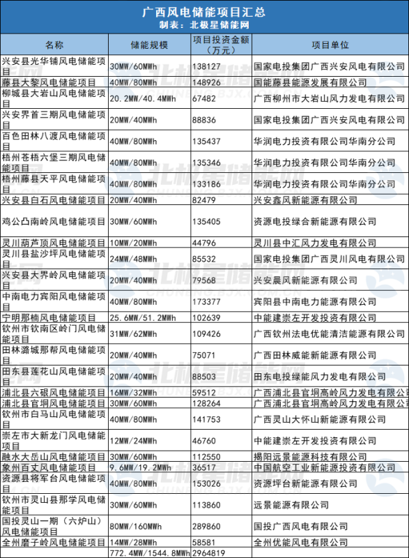 其中值得注意的是,融水大岳山風(fēng)電儲能項目、田東縣蓮花山風(fēng)電儲能項目、百色田林八渡風(fēng)電儲能項目是廣西發(fā)布“能源網(wǎng)”建設(shè)2022年工作推進(jìn)方案中的項目。資源縣將軍臺風(fēng)電儲能項目、雞公凸南嶺風(fēng)電儲能項目、興安縣白石風(fēng)電儲能項目、興安縣大界嶺風(fēng)電儲能項目、梧州藤縣天平風(fēng)電儲能項目、梧州蒼梧六堡三期風(fēng)電儲能項目等多個儲能項目是2021年市場化并網(wǎng)陸上風(fēng)電、光伏發(fā)電及多能互補(bǔ)一體化項目建設(shè)方案的通知中提到的項目。