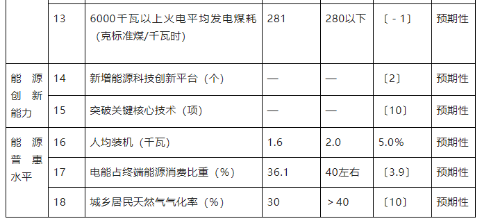 4.能源普惠水平不斷提升。電氣化水平持續(xù)提升,電能占終端用能比重達到40%左右。人均裝機2.0千瓦左右,居民人均生活用電1300千瓦時以上。城鄉(xiāng)居民天然氣氣化率達到40%以上,基本實現(xiàn)城鄉(xiāng)用能服務(wù)均等化。
