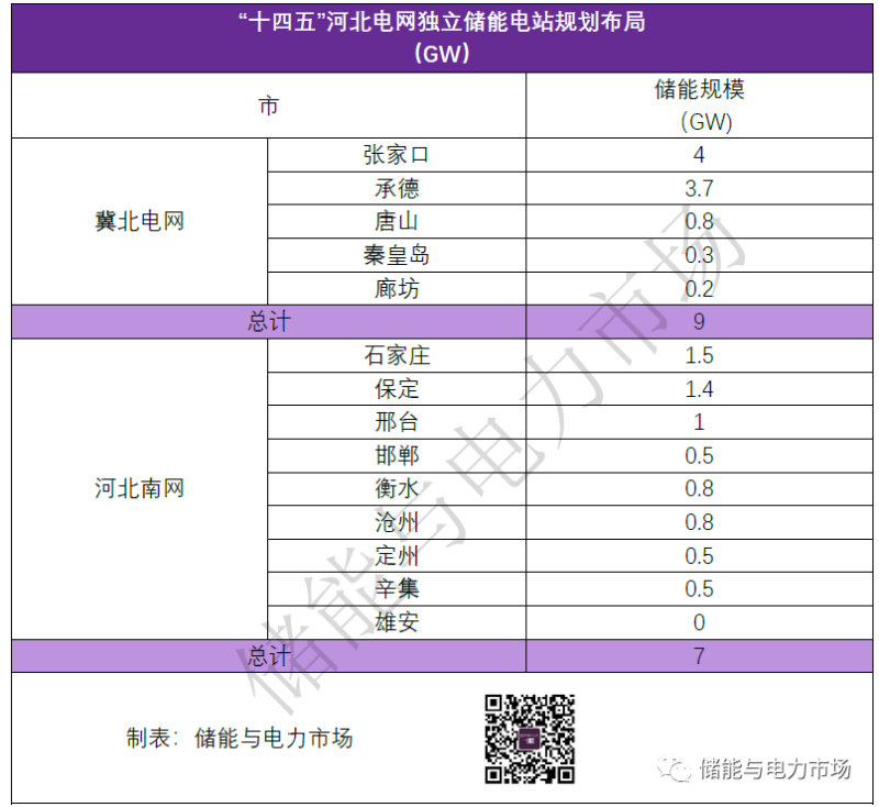 “十四五”期間,河北將在21個重點縣區(qū),建設25個共享儲能電站,共計儲能規(guī)模約5GW。