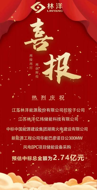 中國(guó)儲(chǔ)能網(wǎng)訊:5月23日晚間,林洋能源(601222.SH)發(fā)布公告,公司控股子公司江蘇林洋億緯儲(chǔ)能科技有限公司正式中標(biāo)中國(guó)能源建設(shè)集團(tuán)湖南火電建設(shè)有限公司新能源工程公司華能巴彥諾日公300MW風(fēng)電EPC項(xiàng)目?jī)?chǔ)能設(shè)備采購(gòu),預(yù)估中標(biāo)總金額為2.74億元。