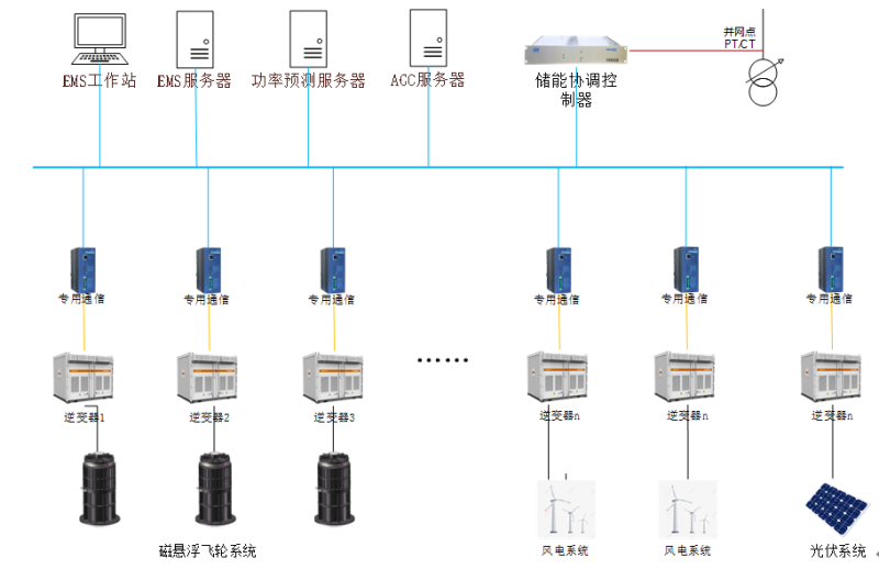 飛輪管理系統(tǒng)FMS(FlywheelManageSystem)對飛輪儲能陣列(單元)內(nèi)的飛輪儲能模組的電壓、電流、SOC,溫度、真空、隔離開關(guān),充放電,保護(hù)等參數(shù)和控制進(jìn)行管理,同時能通過CAN總線或其他方式與PCS、儲能控制系統(tǒng)及EMS系統(tǒng)聯(lián)機(jī)通信,實現(xiàn)對電池進(jìn)行優(yōu)化的充放電管理控制。具體的,F(xiàn)MS應(yīng)具有以下功能:1)數(shù)據(jù)測量采集、2)數(shù)據(jù)計算、3)狀態(tài)參數(shù)數(shù)據(jù)上傳、4)故障診斷、5)電氣保護(hù)、6)電池管理、7)統(tǒng)計功能、8)通訊功能、9)對時功能、10)定值設(shè)置功能、11)操作權(quán)限管理功能、12)事件記錄功能、13)存儲功能、14)故障錄波15)電磁兼容能力、16)耐濕熱性能。