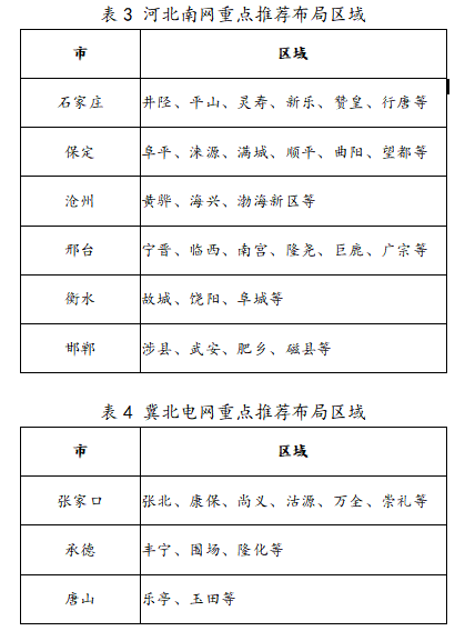 (二)冀北電網(wǎng)項(xiàng)目布局。冀北電網(wǎng)張承地區(qū)新能源裝機(jī)規(guī)模占比約90%,但電網(wǎng)網(wǎng)架相對(duì)薄弱,電力負(fù)荷相對(duì)偏低,調(diào)峰調(diào)頻矛盾突出,將張家口、承德地區(qū)作為獨(dú)立儲(chǔ)能項(xiàng)目布局的重點(diǎn)區(qū)域?!笆奈濉睍r(shí)期,在張家口的張北、康保、尚義,承德的豐寧、圍場(chǎng)、隆化,唐山的樂(lè)亭、玉田等縣區(qū),共布局獨(dú)立儲(chǔ)能項(xiàng)目建設(shè)規(guī)模900萬(wàn)千瓦(附表2、4)。