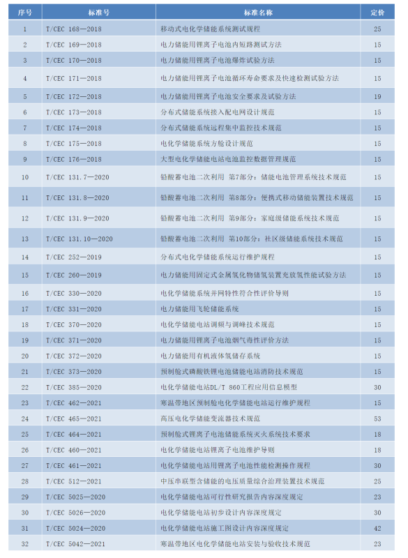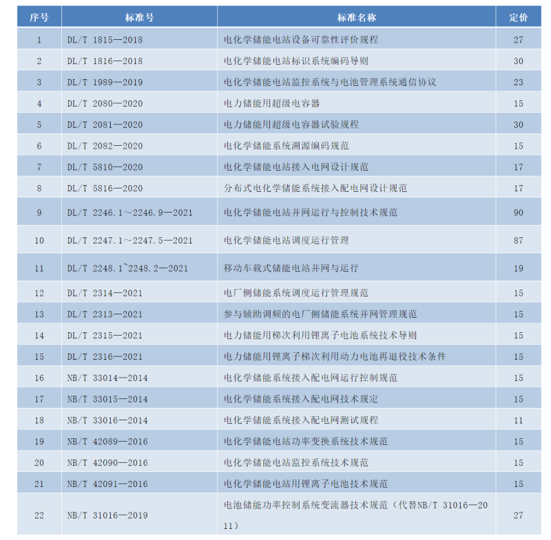 儲(chǔ)能相關(guān)行業(yè)標(biāo)準(zhǔn)名錄