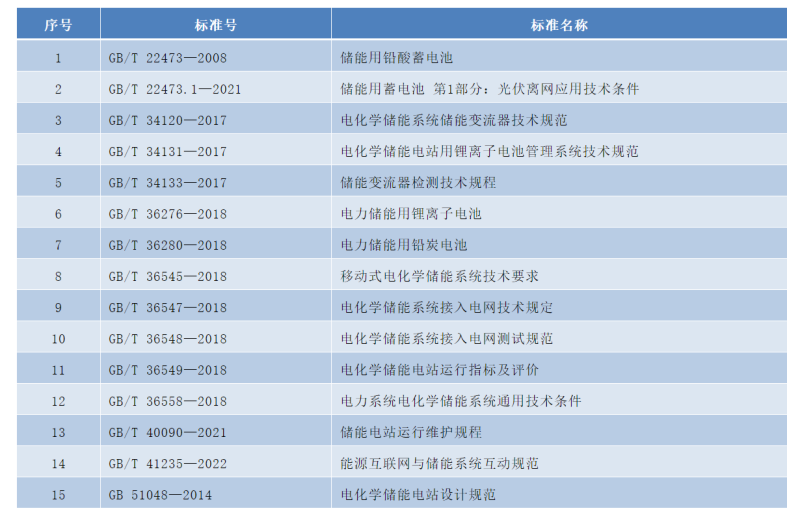 儲(chǔ)能相關(guān)國(guó)家標(biāo)準(zhǔn)名錄