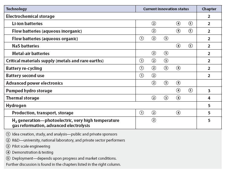 表1 選定儲能技術(shù)當(dāng)前創(chuàng)新狀況調(diào)查結(jié)果摘要