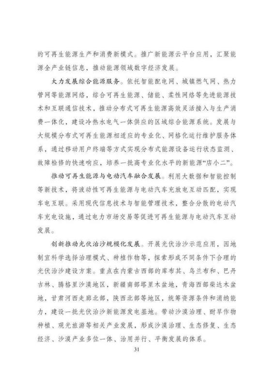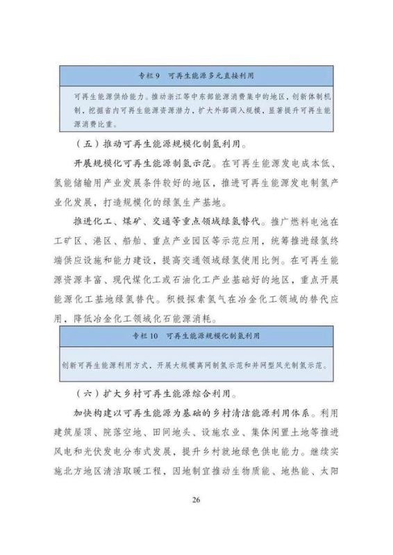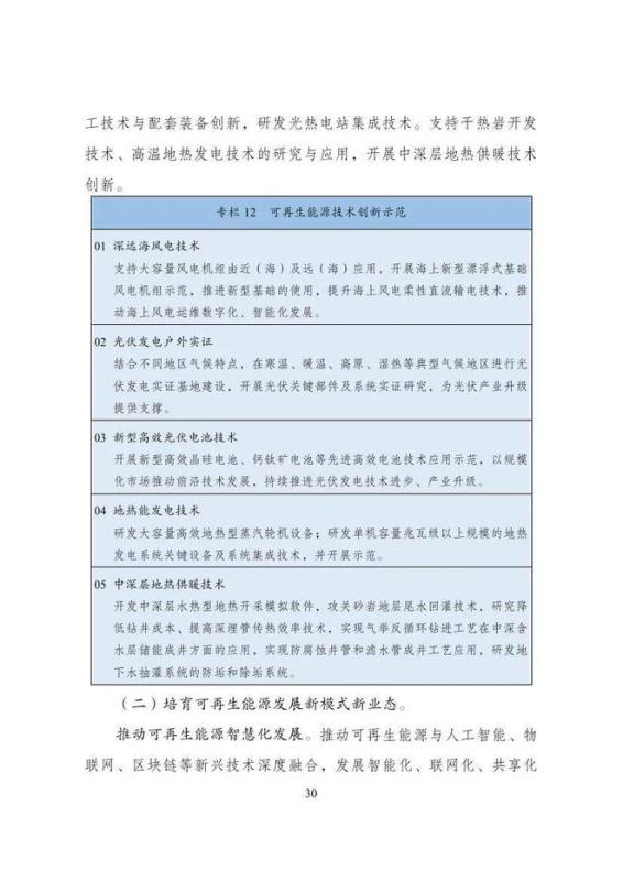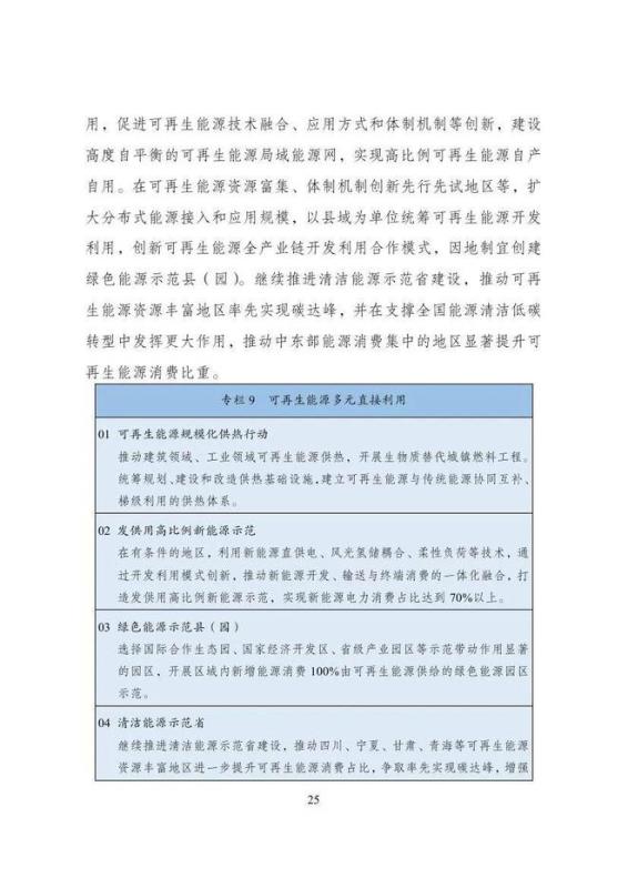 5、在學(xué)校醫(yī)院、機(jī)場(chǎng)車站、工業(yè)園區(qū)等區(qū)域,推動(dòng)可再生能源與終端冷熱水電氣等集成耦合利用,促進(jìn)可再生能源技術(shù)融合、應(yīng)用方式和體制機(jī)制等創(chuàng)新,建設(shè)高度自平衡的可再生能源局域能源網(wǎng),實(shí)現(xiàn)高比例可再生能源自產(chǎn)自用。在可再生能源資源富集、體制機(jī)制創(chuàng)新先行先試地區(qū)等,擴(kuò)大分布式能源接入和應(yīng)用規(guī)模,以縣域?yàn)閱挝唤y(tǒng)籌可再生能源開發(fā)利用,創(chuàng)新可再生能源全產(chǎn)業(yè)鏈開發(fā)利用合作模式,因地制宜創(chuàng)建綠色能源示范縣(園)。繼續(xù)推進(jìn)清潔能源示范省建設(shè),推動(dòng)可再生能源資源豐富地區(qū)率先實(shí)現(xiàn)碳達(dá)峰,并在支撐全國能源清潔低碳轉(zhuǎn)型中發(fā)揮更大作用,推動(dòng)中東部能源消費(fèi)集中的地區(qū)顯著提升可再生能源消費(fèi)比重。