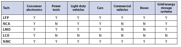磷酸鐵鋰電池(LFP)在本世紀(jì)初首次實現(xiàn)商業(yè)化生產(chǎn)。其正極化學(xué)性質(zhì)最穩(wěn)定,不含資源有限的元素,可以充放電循環(huán)數(shù)萬次。使用納米級粉末的磷酸鐵鋰電池(LFP)石墨電池是目前功率密度最高的鋰離子電池之一。磷酸鐵鋰電池(LFP)具有商業(yè)化鋰離子電池最低的電池電壓(與石墨負(fù)極一起使用時約為3.5V),有助于其穩(wěn)定性。這一特性以及適中的比容量導(dǎo)致電池級比能量為90~140Wh/kg。較低的比能量限制了LFP電池正極在某些應(yīng)用中的使用(例如需要更長行駛里程的電動汽車),但它們提供的功率、安全性、壽命和成本的結(jié)合導(dǎo)致了廣泛用于小型和大型商業(yè)應(yīng)用,從電動工具到住宅和電網(wǎng)規(guī)模的儲能應(yīng)用。LFP電池正極也越來越多地用于乘用電動汽車的電池中,而最大化行駛距離并不是其優(yōu)先考慮的問題。它們可能是目前固定儲能系統(tǒng)中低成本的鋰離子電池正極最具吸引力的選擇。