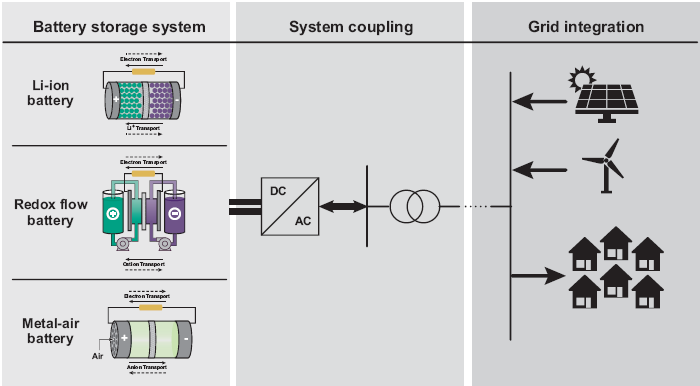 人們通常將電化學(xué)儲能設(shè)備稱為電池,其工作原理是通過氧化還原反應(yīng)將化學(xué)能和電能相互轉(zhuǎn)換。這些反應(yīng)發(fā)生在兩個不同的電極(正極和負(fù)極)上,它們通過外部電路連接并由離子導(dǎo)電介質(zhì)(即電解質(zhì))進(jìn)行物理分離。而電網(wǎng)中的電池儲能系統(tǒng)以及在這項研究中強(qiáng)調(diào)的電池技術(shù)幾乎無一例外是可充電電池,其氧化還原過程是可逆的。