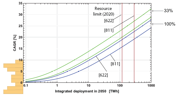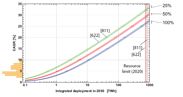 圖2.10 到2050年鋰離子的部署的復(fù)合年增長(zhǎng)率(CAGR)