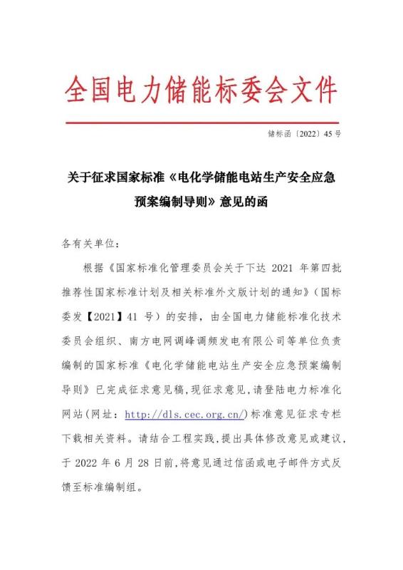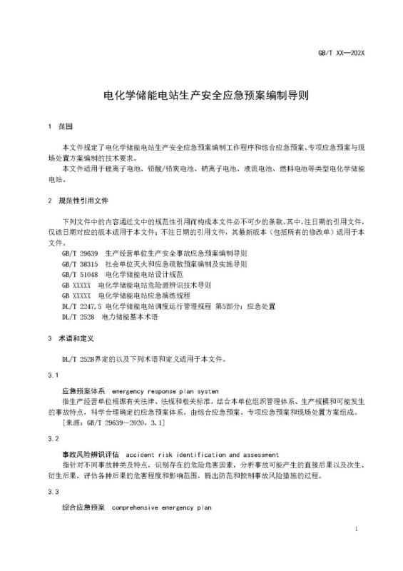 國家標(biāo)準(zhǔn)《電化學(xué)儲能電站危險(xiǎn)源辨識技術(shù)導(dǎo)則》征求意見