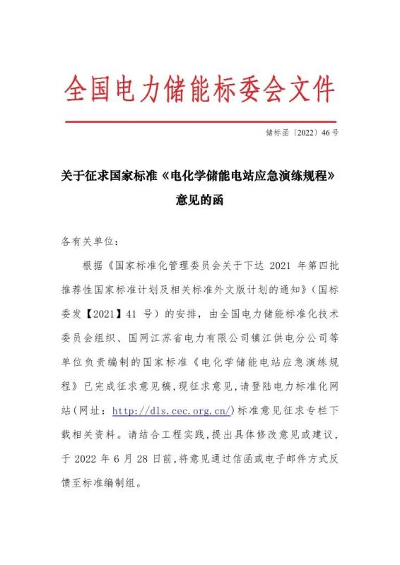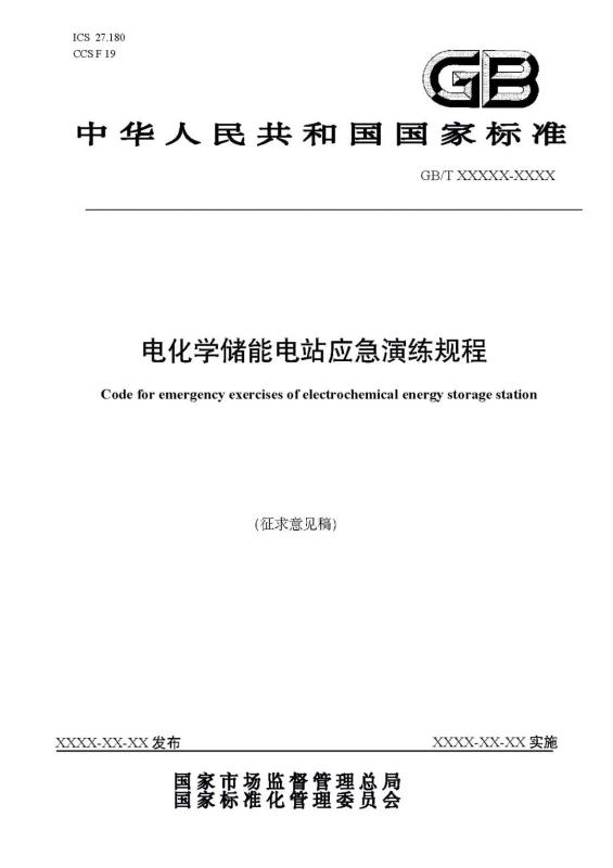 國家標(biāo)準(zhǔn)《電化學(xué)儲能電站應(yīng)急演練規(guī)程》征求意見