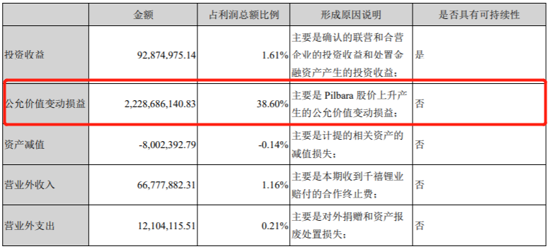 根據(jù)年報來看,公司2021年公允價值變動收益的主要來源是公司所持有的Pilbara公司股價上漲帶來的收益。目前,贛鋒鋰業(yè)擁有Pilbara 6.16%的股權(quán),而Pilbara全資持有西澳Pilbara Pilgangoora鉭鋰礦項(xiàng)目,這是世界上最大的鋰輝石礦山之一。2021年,隨著碳酸鋰價格的一路飆升,Pilbara的股價也坐上了火箭,公司股價從年初的1.09澳元/股,最高上漲至3.7澳元/股,年末小幅回調(diào)至3.20澳元/股,漲幅近三倍。但投資的收益只能算是“浮盈”,持續(xù)性不會很強(qiáng),后面若遇到碳酸鋰價格大幅回撤,公司在這方面的風(fēng)險敞口還是相當(dāng)恐怖的。