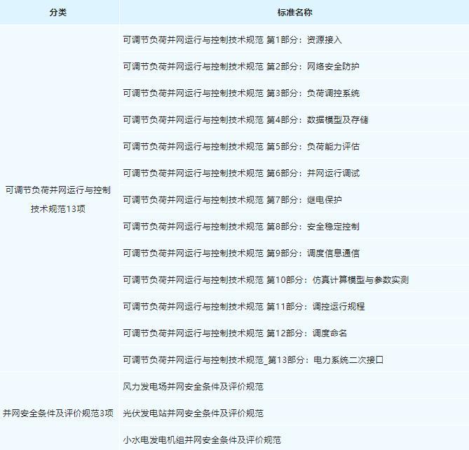 可調(diào)節(jié)負(fù)荷并網(wǎng)運(yùn)行與控制技術(shù)規(guī)范系列13項(xiàng)電力行業(yè)標(biāo)準(zhǔn)全面覆蓋并規(guī)范可控負(fù)荷資源參與電網(wǎng)調(diào)控業(yè)務(wù)各環(huán)節(jié),確保可控負(fù)荷資源參與調(diào)控的安全性和規(guī)范性,提升了負(fù)荷調(diào)節(jié)資源的調(diào)控能力。風(fēng)電、光伏、小水電并網(wǎng)安全評(píng)估3項(xiàng)行業(yè)標(biāo)準(zhǔn)進(jìn)一步明確了新能源電站并網(wǎng)的安全性要求,為電源結(jié)構(gòu)轉(zhuǎn)型提供標(biāo)準(zhǔn)支撐。