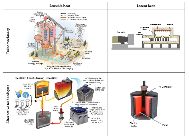 對于顯熱或潛熱系統(tǒng),基于渦輪機械的設計通常將技術風險限制在將儲能系統(tǒng)連接到渦輪機械的熱交換器以及與能源相關的組件上。然而,在啟動時間和升溫速率等屬性方面的技術改進可能會受到限制,特別是在聯(lián)合循環(huán)系統(tǒng)采用蒸汽朗肯循環(huán)的情況下。相比之下,替代能源轉(zhuǎn)換器(即固態(tài)設備)仍需要研發(fā)才能實現(xiàn)類似的效率和單位功率成本,但它們具有更好的全面性能潛力。這包括即使在小規(guī)模下也能實現(xiàn)高效率。