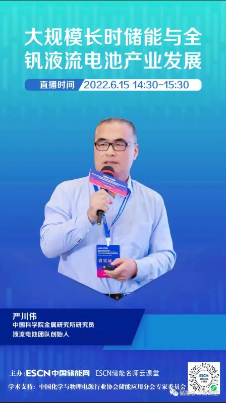 6月15日下午14:30-15:30,中國儲能網(wǎng)邀請中國科學(xué)院金屬研究所研究員,液流電池團(tuán)隊(duì)創(chuàng)始人嚴(yán)川偉做客“ESCN儲能名師云課堂”(在線直播),為大家分享《大規(guī)模長時儲能與全釩液流電池產(chǎn)業(yè)發(fā)展》主題報(bào)告。歡迎業(yè)界同仁在線學(xué)習(xí)與交流。