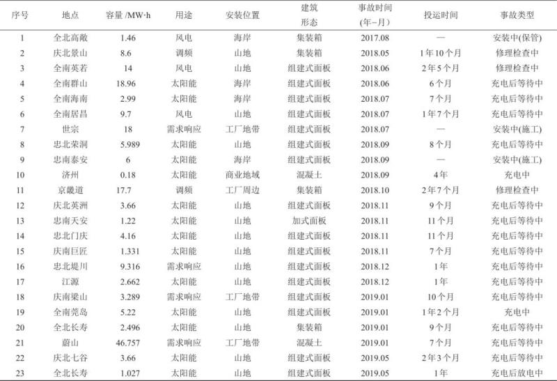 表1 2017年8月—2019年6月韓國(guó)儲(chǔ)能電站事故