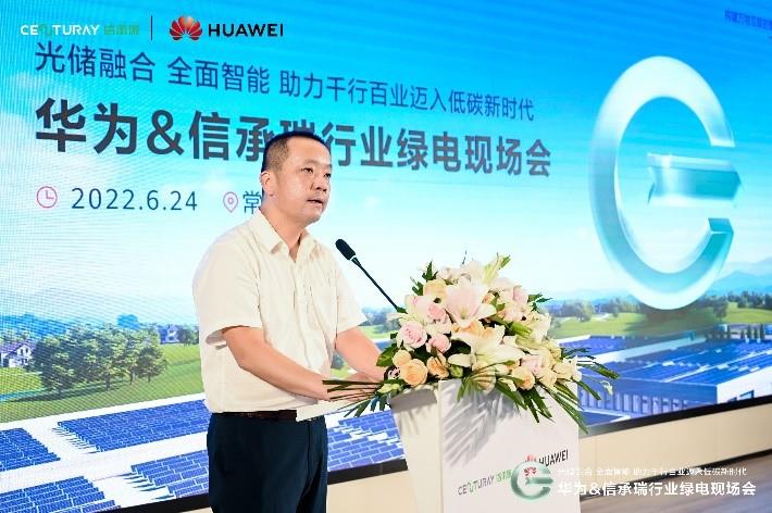 中國儲能網(wǎng)訊:2022年6月24日,由華為與信承瑞公司主辦的“光儲融合,全面智能,助力千行百業(yè)邁入低碳新時代”行業(yè)綠電現(xiàn)場會在常州舉行。常州市工業(yè)和信息化局副局長沈新峰、信承瑞技術有限公司常務副總裁許宏、華為智能光伏軍團儲能軍團長尹飛軍等領導蒞臨現(xiàn)場致辭發(fā)言,業(yè)界產(chǎn)學研專家、行業(yè)同仁共聚一堂,探討儲能與新型電力系統(tǒng)融合的發(fā)展趨勢和未來機會,助推產(chǎn)業(yè)綠色低碳發(fā)展。