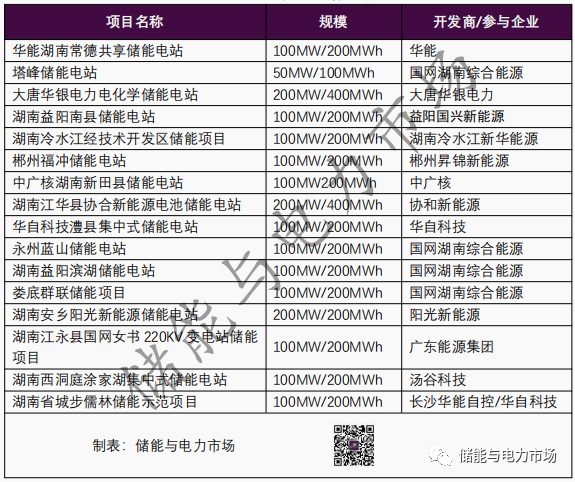 湖南已公布的獨(dú)立式儲(chǔ)能項(xiàng)目