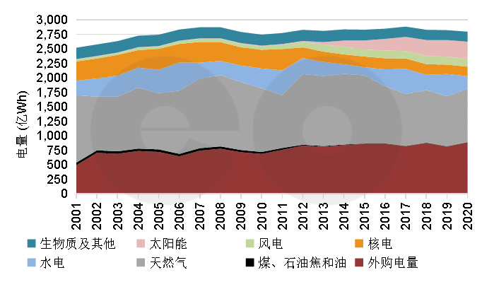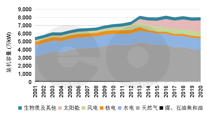 圖6 加州電源裝機(jī)規(guī)模變化(不含外購電)