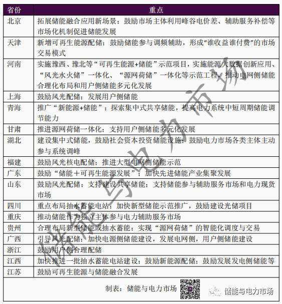 各省份“十四五”時期儲能發(fā)展重點