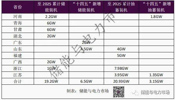 各地區(qū)“十四五”新能源規(guī)劃中提出的儲能和抽水蓄能發(fā)展目標