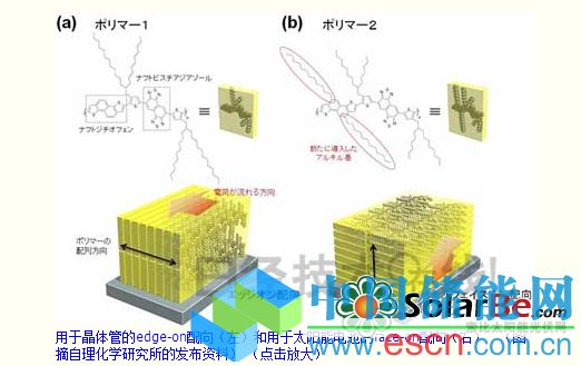 我們并沒(méi)有盲目開(kāi)發(fā)材料。我們?cè)谝郧坝冒雽?dǎo)體高分子的幾種材料進(jìn)行研究的過(guò)程中,發(fā)現(xiàn)了“如果這樣做的話,配向會(huì)變成這樣”的現(xiàn)象,從而最終找出了半導(dǎo)體高分子的配向規(guī)律。這個(gè)規(guī)律并不是通過(guò)數(shù)值計(jì)算導(dǎo)出的,而是憑經(jīng)驗(yàn)找到的。為了做成face-on而引入烷基也是基于經(jīng)驗(yàn)。