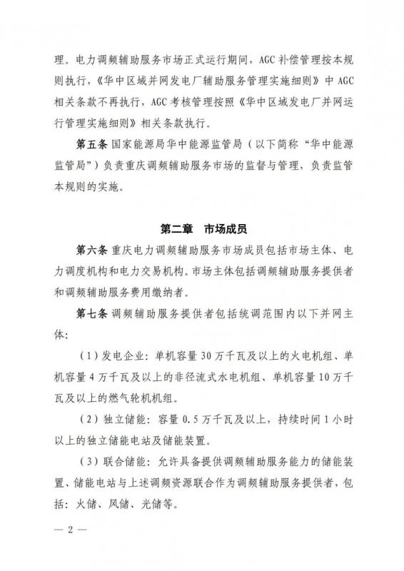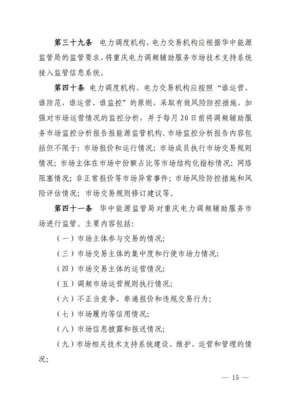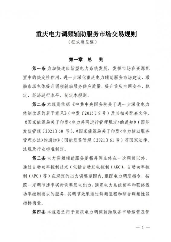 華中能源監(jiān)管局關(guān)于《重慶電力調(diào)頻輔助服務(wù)市場交易規(guī)則(征求意見稿)》公開征求意見的通知