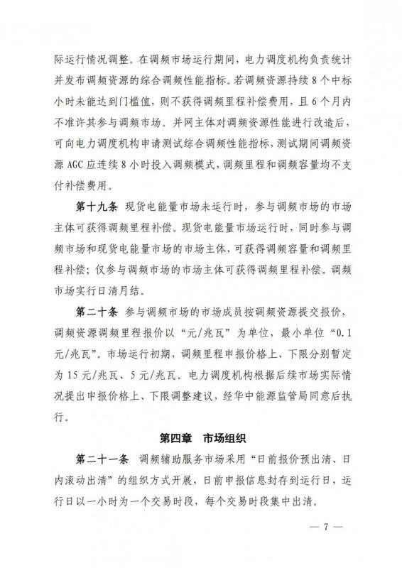 在市場競價方面,市場運(yùn)行初期,調(diào)頻里程申報價格上、下限分別暫定為15元/MW、5元/MW。