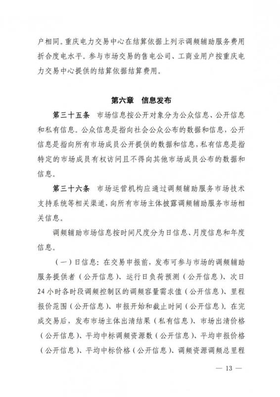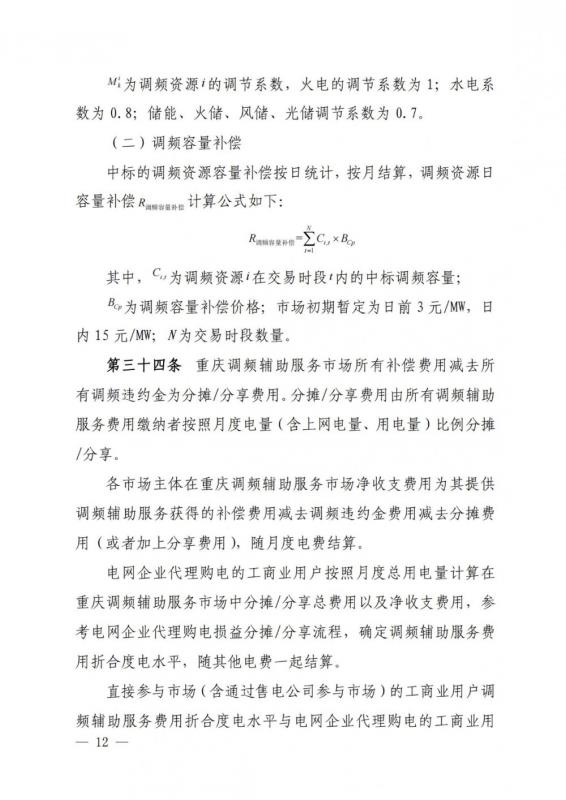 據(jù)了解,重慶和江西省同屬于華中區(qū)域電網(wǎng),此次新出臺的調(diào)頻市場政策與江西省日前出臺的《江西電力調(diào)頻輔助服務(wù)市場交易規(guī)則(征求意見稿)》在規(guī)則的設(shè)定上基本保持一致。