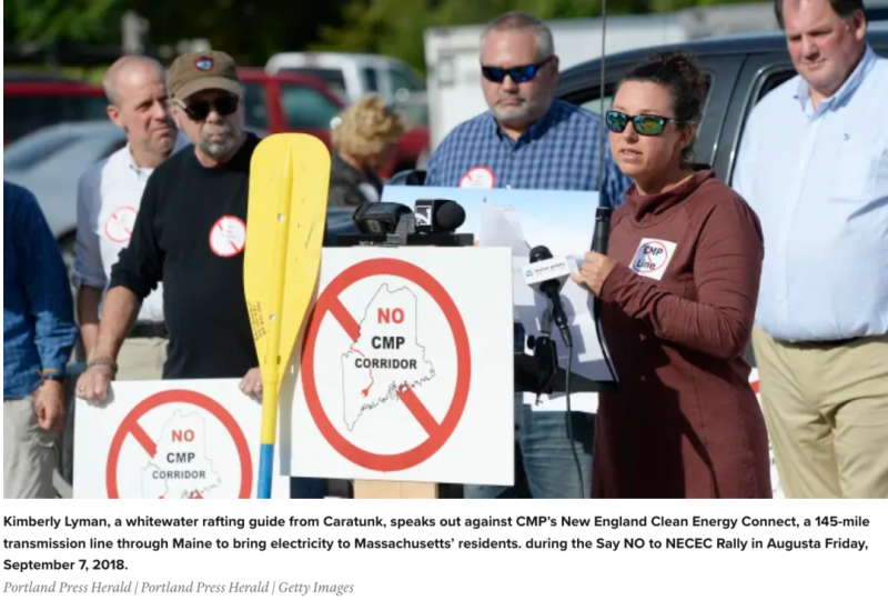 反對建設(shè)輸電線路的公民組織成一個名為“對NECEC說不”的團(tuán)體,這是該項(xiàng)目名稱New England Clean Energy Connect的首字母縮寫。該團(tuán)體的負(fù)責(zé)人是46歲的桑迪·霍華德,是基恩州立學(xué)院的音樂教授?;羧A德表示希望保護(hù)其環(huán)境和生活方式。她說,修建輸電線“將對緬因州的自然資源、風(fēng)景特征、對緬因州四季娛樂旅游業(yè)的經(jīng)濟(jì)影響產(chǎn)生巨大影響?!?