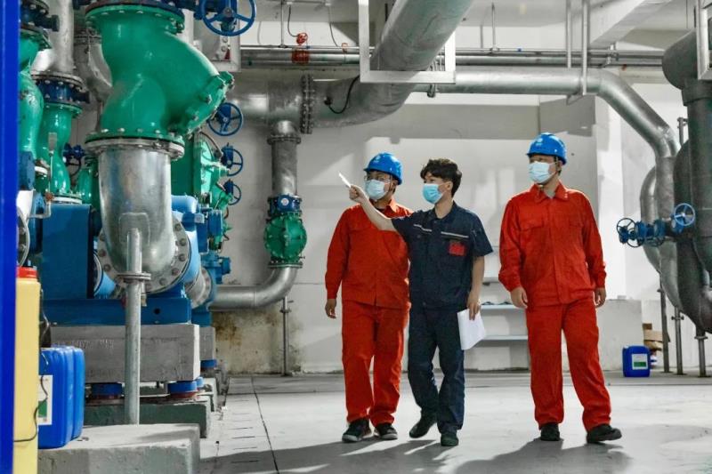 ▎供電員工查看萬地廣場中央空調(diào)水循環(huán)系統(tǒng)