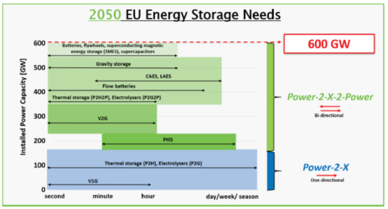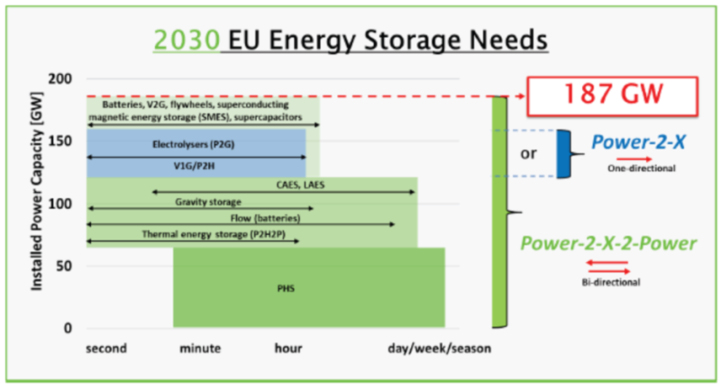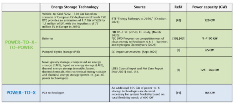 正式如歐盟的研究所述,為滿足2050年的總儲(chǔ)能靈活性需求,Power-to-X解決方案可以提供165GW的電力,該解決方案在提供系統(tǒng)靈活性(能量不回饋給電力系統(tǒng))。